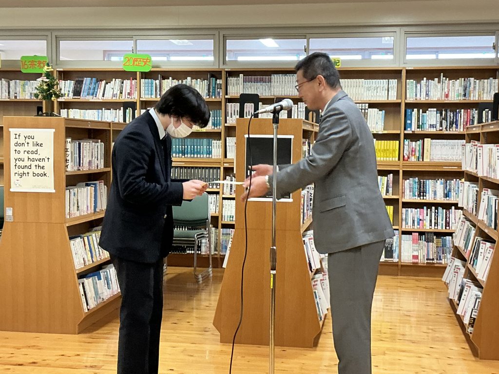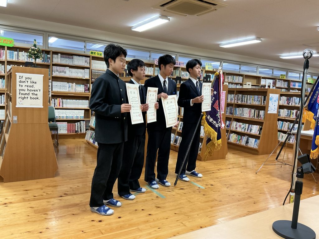 はじめに入賞者の紹介表彰が行われ、その後、県や九州大会などで特に優れた成績を収めた生徒たちに、校長先生から賞状や楯が渡されました。表彰だけで1時間近くかかるほど、多くの生徒が多方面で活躍しました。勝利を手にするまでには、さまざまなドラマや感動があったことでしょう。その過程を何よりの宝物としてほしいと思います。