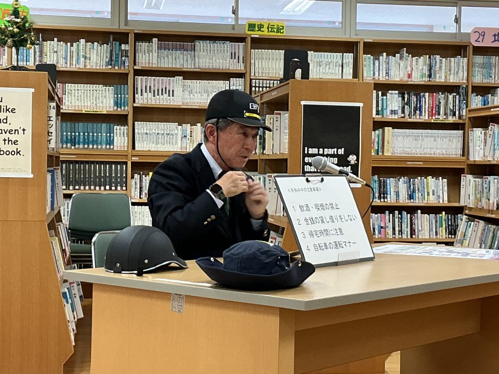 自転車ヘルメットの紹介 (生徒指導部の吉田先生)