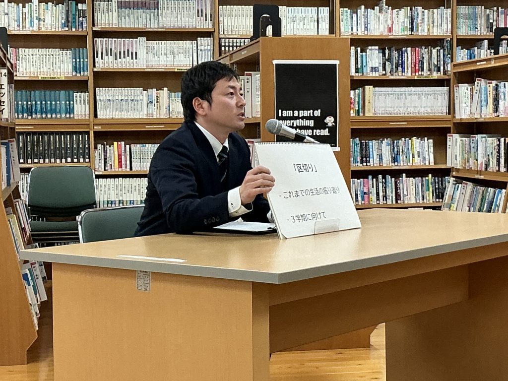 式の後の諸連絡では生徒指導部と進路指導部から、年末年始の過ごし方や、自分の進路を考える上でのアドバイスなどについてお話がありました。