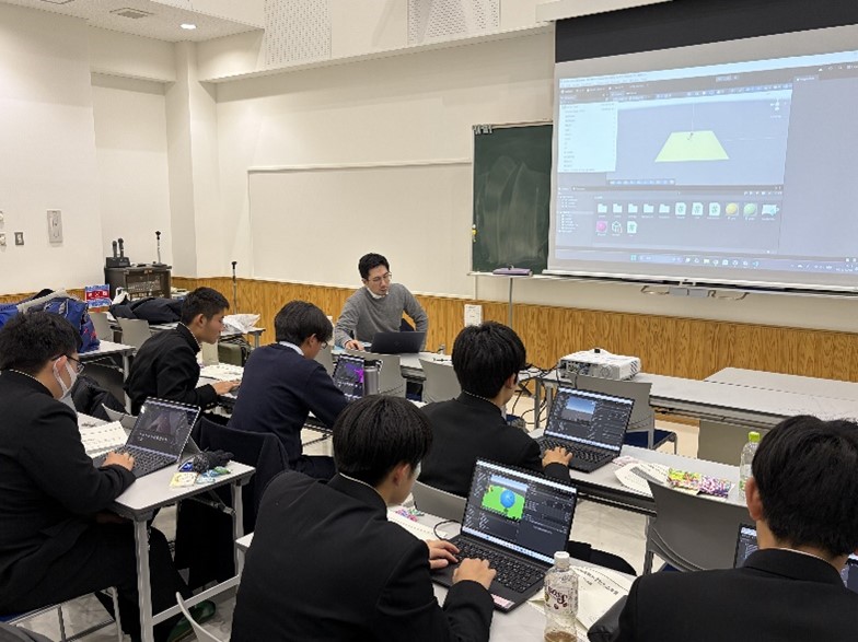 本校において、プログラミングに興味をもつ高校2年生4名、3年生4名を対象に、Unityを活用したプログラミング講習会を実施しました。