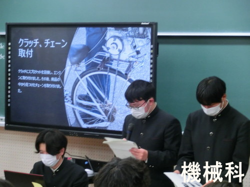 課題研究は、週3時間の授業を活用し、生徒一人ひとり、またはグループごとに設定した研究テーマについて、約1年間かけて主体的に取り組む学習活動です。調査・研究だけでなく、試行錯誤を重ねながら作品を製作するなど、学科の特色を生かした実践的な学びが行われました。