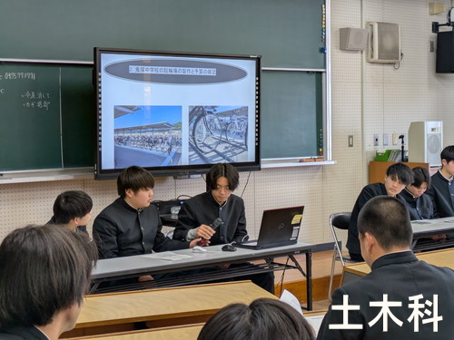 また、発表会には1・2年生も参加し、3年生の発表を見学しました。発表者である3年生は、限られた時間の中で内容を分かりやすく伝えるために、資料の工夫や話し方など、聴衆を意識したプレゼンテーション能力を身に付ける良い機会となりました。一方、1・2年生にとっては、今後自分たちが課題研究に取り組む際の具体的な参考になるとともに、学習への意欲や意識を高める貴重な機会となりました。