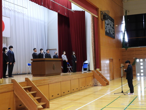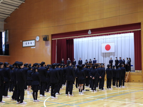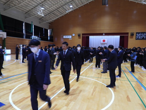 全員で校歌斉唱し、生徒、職員の拍手に送られて体育館を後にされました。転退職される先生方、これまで大変お世話になりました。先生方の今後益々のご健勝とご活躍をお祈り致します。
