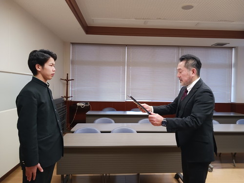 令和8年2月9日(月)13時より、本校応接室にて建築科3年の瀬戸夢人さんへの「佐賀県建築士会会長賞」の授賞式が行われました。