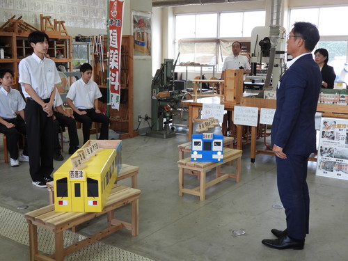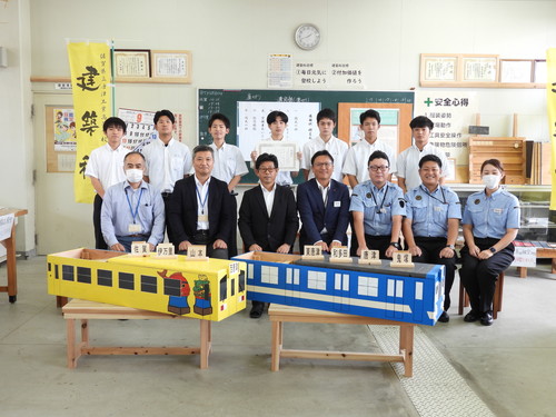 令和7年9月30日(火)に建築科木造実習室に於いて、JR九州へのミニトレインの贈呈式を実施しました。