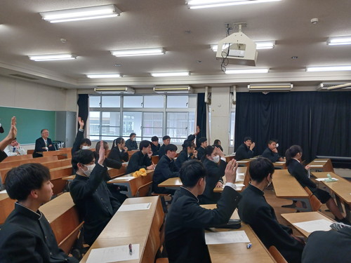 生徒たちは真剣な表情で話に耳を傾け、積極的にメモを取る姿が多く見られました。また、講話後には質問をするなど、意欲的に学ぶ様子が印象的でした。
