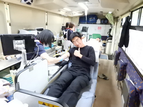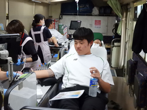 12月16日(火)、佐賀県赤十字血液センターから献血車が来校しました。冬場は輸血用血液が不足しがちです。本校からも希望者を募り血液確保に協力しました。先日行われた献血セミナーで、200ml献血は16歳から、400ml献血は女性は18歳以上から、男性は17歳から可能だと話されていました。今回は、希望者は多かったものの、インフルエンザの流行や問診段階で不可となった人もいましたが、昨年度より17名も多い、51名が献血に協力しました。生徒達は献血は初めての人が殆どで、緊張した面持ちで採血を受けていました。今回の献血を通じて、一人でも多くの人が救われることを望みます。