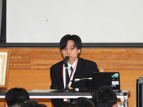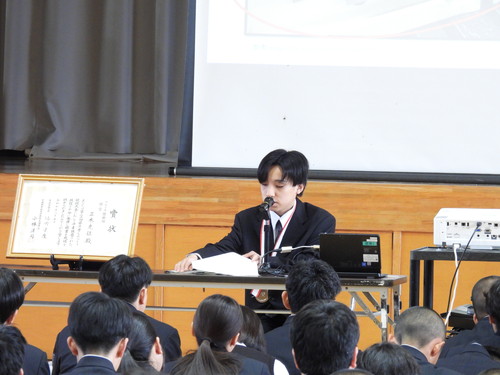 11月17日(月)に正木様を本校にお迎えし、「令和7年度若年者ものづくり競技大会全国大会に出場して」と題して、全国大会に至るまでの努力の過程や、競技に向けて工夫した点、そして日々学習に励む後輩たちへの貴重なアドバイスとして、