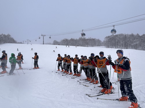 今年のスキー研修は富良野スキー場 北の峰ゾーンで行われ、開校式のあと、生徒達は熟練した地元インストラクターの指導を受けて、めきめきと上達し、スキー研修3日目にはリフトを使って一人で滑るようになっていました。