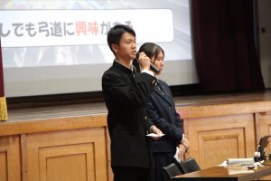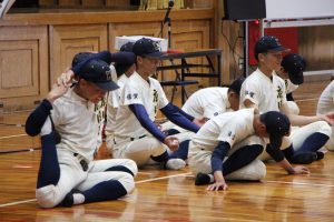 続いて行われた部活動紹介では、各部が工夫を凝らした発表で活動内容や魅力を伝えました。生徒は実際のプレーやパフォーマンスなど実演を交えながら日々の活動を紹介。会場は大いに盛り上がり、新入生にとって部活動の関心が高まる時間になりました。