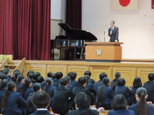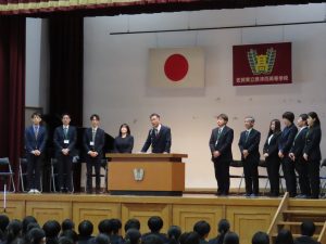 HOME > お知らせ > What’s NEW > 新任式・1学期始業式 新任式・1学期始業式 入力日2026年4月8日 内容~ 気持ちを新たに、1学期スタート! ~ 新任式・第1学期始業式 4月6日(月)に新任式および第1学期始業式を行いました。 新任式では、この春から本校に赴任された11名の先生方の紹介がありました。新しい先生方の挨拶を受け、生徒たちはこれから始まる学校生活への期待を感じている様子でした。 続いて行われた始業式では、校長先生より新年度に向けたお話がありました。新しい学年を迎え、それぞれが目標に向かって学習や探究活動を行ってほしいと思います。 閲覧数290 前へ 次へ