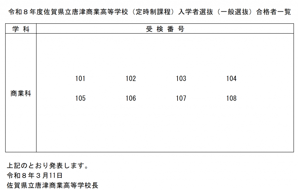 令和8年度一般選抜合格者発表