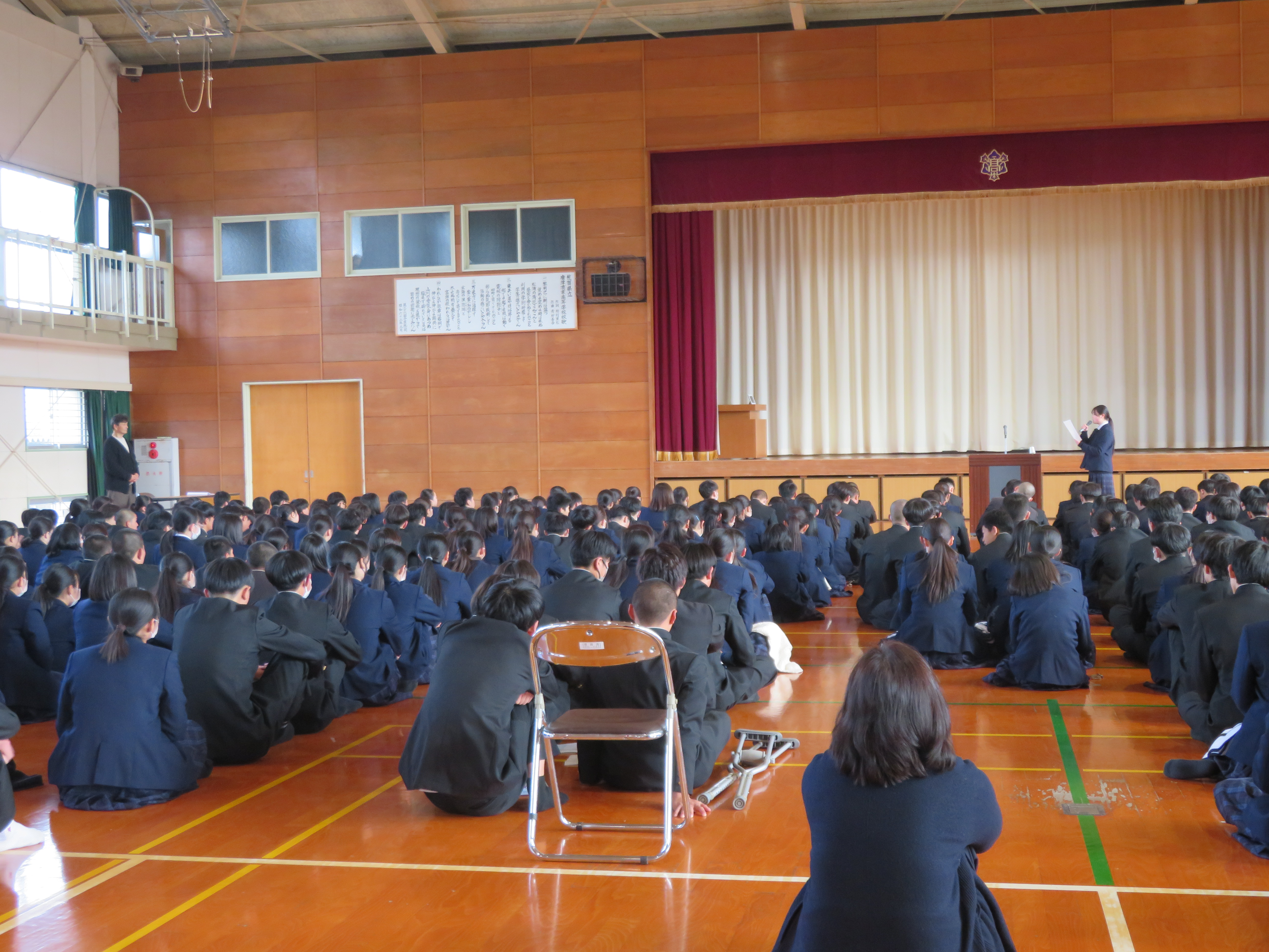 HOME > がん教育講演会 がん教育講演会 令和6年1月17日(水)にNPO法人クレブスサポート 副島 健生 様によるがん教育講演会を行いました。 国民の2人に1人がかかると推定されるがんについて、基礎的教養を身に付け、自らの健康を適切に管理することの必要性と、がん患者に対する正しい認識を持つことの大切さについて話していただきました。 生徒の感想 「がんは若い人でもかかる恐れがある病気なので、検査や予防接種を受けることが大切だと感じました」 「がんになることで心の病気にもつながってしまうので、闘病生活では心の健康を保つための支えも必要だということがわかりました」