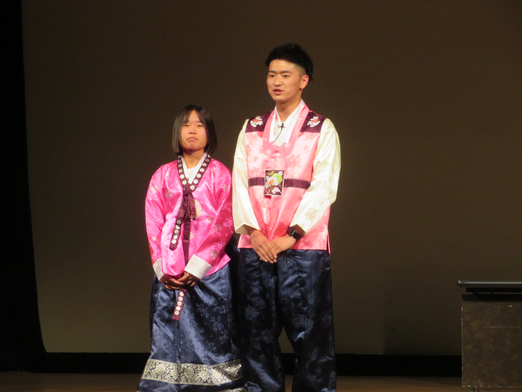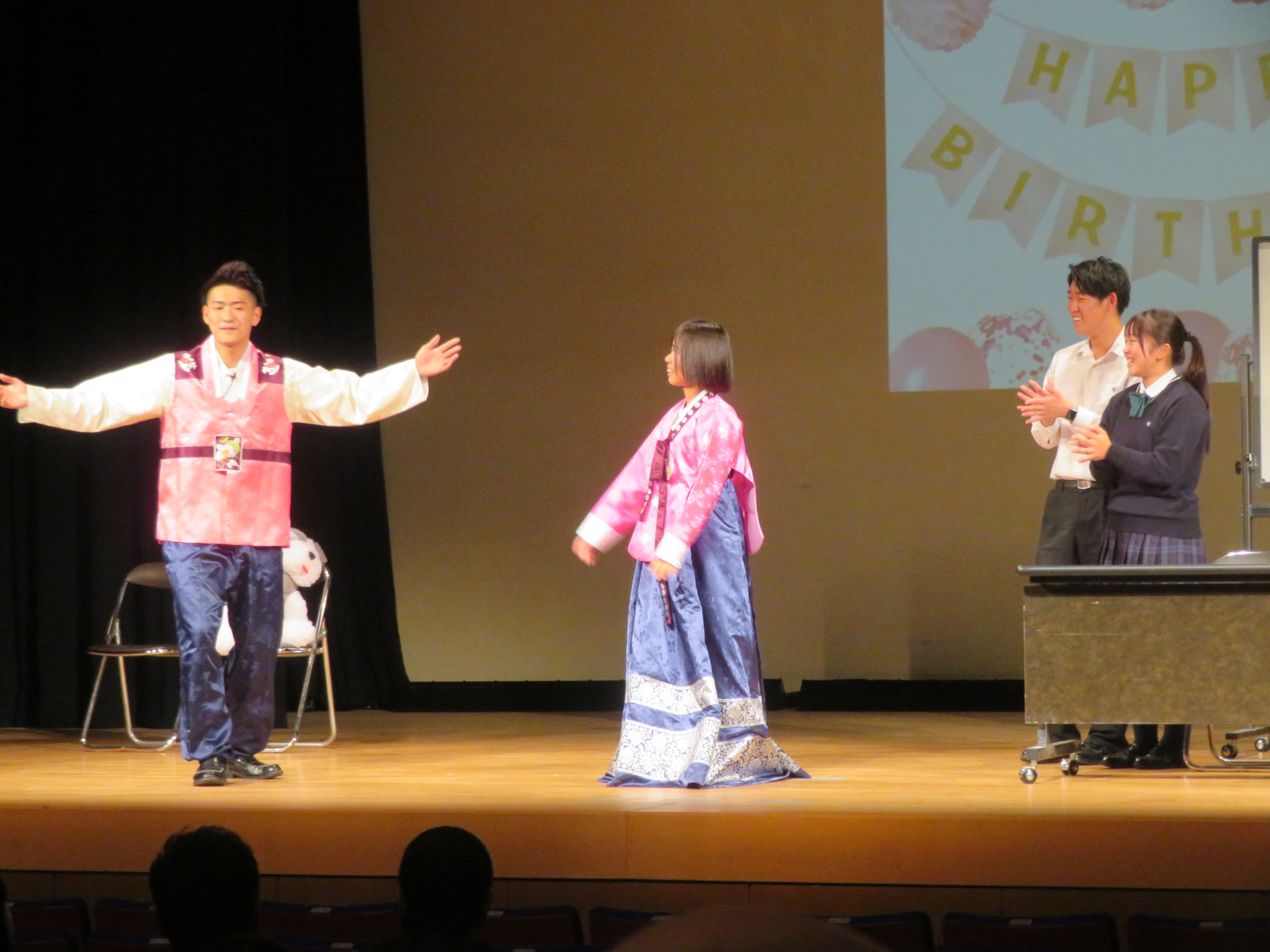 HOME > ハングルスピーチコンテスト ハングルスピーチコンテスト 令和5年10月22日(日)佐賀県立名護屋城博物館で第18回韓国語スピーチコンテストが行われました。 スキット部門(2名による会話スピーチ)に山口永遠さんと青木瑠耶さんが参加し、井上大空さんと坂田彩音さんが応援出演をしました。「友達の家で誕生パーティー♪」というテーマで見事なかけ合いを見せ、山口さんは韓国語による歌と踊りも披露し、会場を大いにわかせました。 スピーチ部門では山口優泉さんが「私が韓国語を勉強する理由」というテーマでスピーチを行い、自身の体験や将来の夢を流暢な韓国語で語ってくれました。 7月から幸島先生のご指導の下、練習に取り組み、高いレベルの発表ができたと思います。