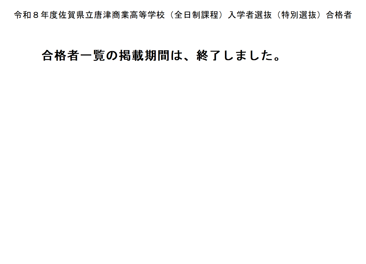 令和8年度特別選抜合格者発表