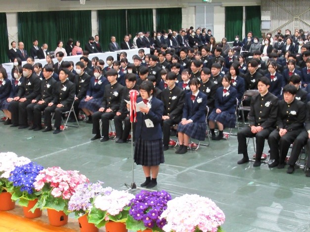 HOME > イベントギャラリー > 第63回卒業証書授与式 第63回卒業証書授与式 入力日2025年3月17日 閲覧数728 2月28日(金)第63回卒業証書授与式を挙行しました。 今年度は、全日制144名、定時制9名の生徒が巣立っていきました。 卒業生の皆さん、唐津商業高校で過ごした時間は、これからのあなたたちの背中を押してくれます。永遠に続いている道を、自分が選んだ道を信じ突き進み、社会で活躍できることを職員一同、お祈りいたします。 前へ 一覧へ戻る 次へ