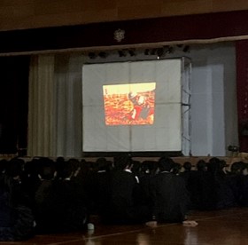HOME > イベントギャラリー > 芸術鑑賞会 芸術鑑賞会 入力日2025年11月5日 閲覧数113 10月30日(木)の5・6限目に芸術鑑賞会がありました。 「地雷探知犬ニーナ」を演題に、爆撃機や銃撃戦の轟音が鳴りやまないカンボジアの現地の人々の暮らしや地雷撤去に励む人々の苦しみや葛藤などを知ることができました。世界にはいまだに戦地が数多くあるため、今の私たちにできることは何か改めて考えさせられる劇でした。 劇団マグネットワールドの皆さん、ありがとうございました。 一覧へ戻る 次へ