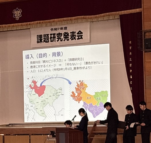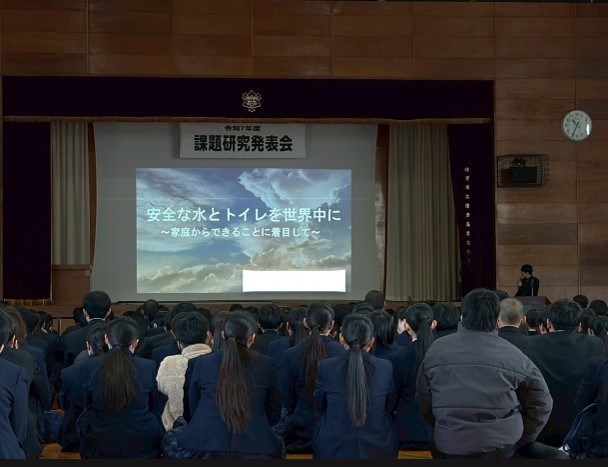 HOME > イベントギャラリー > 課題研究発表会 課題研究発表会 入力日2026年2月16日 閲覧数154 2月2日(月)に、課題研究発表会を行いました。 課題研究のそれぞれの班により、3年生が1年間、研究・活動してきた成果を全校生徒の前で発表しました。 まなぐる班では、名刺交換の仕方や毎授業で行っている挨拶練習を実際に披露しました。↓ ハングル班では、チマチョゴリを着用し、登場しました!!↓ また、今年は、2年生の代表による、総合的な探究の時間で取り組んだ探究学習の報告をしました。↓ 1年間の活動がしっかり伝わった発表会でした。 前へ 一覧へ戻る 次へ