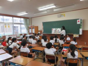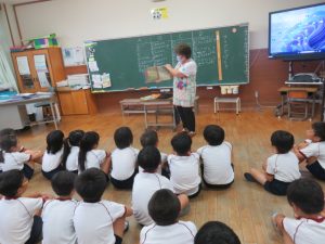 運動会の練習でたくさん体を動かしている時期ですが、このように物語の世界にふれる静かな時間があることで、子どもたちの心がほっと落ち着きます。