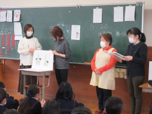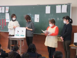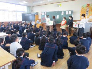 3月3日朝の時間、6年生は、はばたきの会の皆様から最後の読み語りをしていただきました。