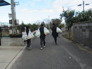 1月9日、今年も全校児童や地域の方々から集まったエコキャップを、ボランティア委員会の児童が市役所へ届けました。