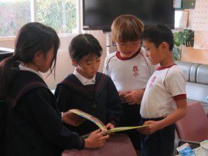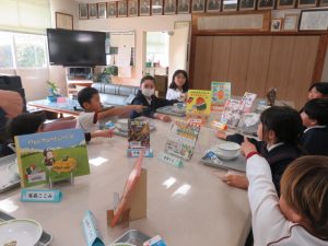 HOME > 教育活動 > 📖読書推進活動📖 > 【全校】ブックランチin校長室~中期~② 【全校】ブックランチin校長室~中期~② 入力日2025年12月16日 閲覧数14 12月16日、ブックランチ(中期)の2回目を行いました。今回は、2年生と4年生が参加しました。 それぞれ異なるジャンルの本を紹介してくれましたが、お互いに読んだことのある本もあり、ブックトークの場面では、あいづちを打ったり、うなずいたりと、温かな反応が見られるとても素敵な時間となりました。 4年生は、紹介の仕方も工夫されており、内容が「あらすじ」になっていて、聞く人にとって分かりやすい説明でした。学年に応じた成長が感じられるブックランチとなりました。 前へ 一覧へ戻る 次へ