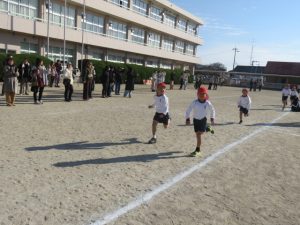 2時間目は低学年、3時間目は中学年、4時間目は高学年が走り、それぞれの学年で力いっぱいの走りが見られました。平日にもかかわらず、多くの保護者の皆様や地域の皆様にお越しいただき、会場は温かい応援の声に包まれました。