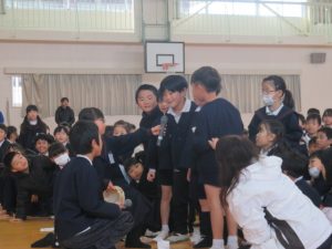 12月12日 全校人権集会を行いました。今年は特別企画として 「にじいろラボ」 さんをお招きしました。子どもたちがよく知っている曲を次々に演奏してくださり、手拍子をしたり、一緒に歌ったりしながら、体育館全体が一つになりました。