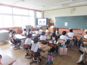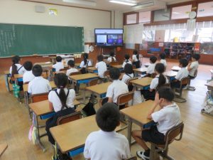 2時間目に運動会がんばろう集会があり、全校集まるので、今回はリモートで行いました。
