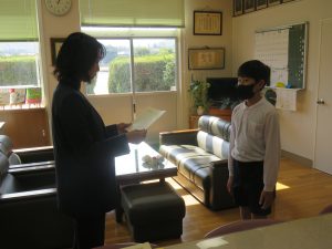 最後に、七夕書き方会の県入賞の表彰式を行いました。本当に素晴らしいですね。充実した11月になるよう、学習も生活もみんなで頑張っていきましょう!