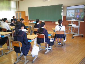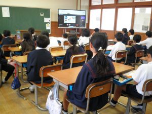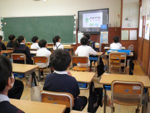 私の話は、「みんなが幸せ 居心地の良い学級をつくるには」の話をしました。自分の考えと友達の考えは違うこと、見聞きしたことを人に話したり、不確かな情報を信じたりしないことなどについて話しました。