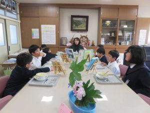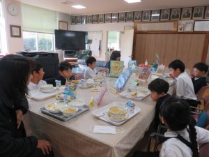 HOME > 教育活動 > 📖読書推進活動📖 > 【全校】ブックランチin校長室~中期~① 【全校】ブックランチin校長室~中期~① 入力日2025年12月12日 閲覧数35 今日から3回にわたり、9月から12月までの読書状況をもとに、各学級から2名ずつ校長室へ招待し、おすすめの本と一緒に給食を楽しむ 「ブックランチ」 を開催します。 初日の今日は、1年生と5年生が参加しました。持ってきてくれた本のジャンルはさまざまで、それぞれが自分の言葉でしっかりと紹介してくれました。 最後には、みんなで本にまつわるクイズ大会も行い、大変盛り上がりました。読書の楽しさがさらに広がる、すてきな時間となりました。 前へ 一覧へ戻る 次へ
