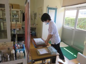 早速、昨日は市の就学時健康診断の補助をしていただきました。保健室に来室する児童への対応や発育測定、保健室内の整理整頓など、さまざまな仕事を通して多くのことを学ばれています。