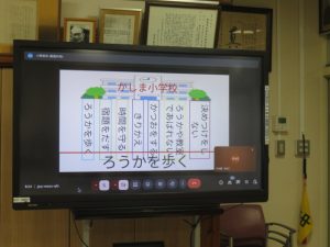「自分からあいさつをしよう」「ろうかを歩こう」の効果や目的、その意味についてわかりやすく話されました。