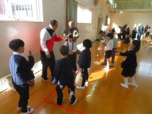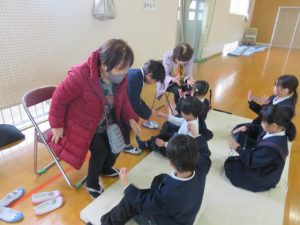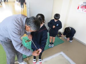 1月15日、1年生は昔遊び体験学習を行いました。