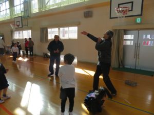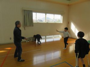 地域の老人会の皆様19名にご来校いただき、あやとりやお手玉、紙飛行機、はごいた、けん玉、コマ回し、めんこ、竹とんぼなど、昔ながらの遊びを教えていただきました。体育館や教室に設けられた各コーナーを回りながら、子どもたちはすべての遊びを体験することができ、笑顔と歓声があふれる時間となりました。