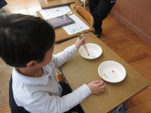 HOME > 教育活動 > イベントギャラリー(校長室ブログ) > 【1年】食育教室「はしの使い方」 【1年】食育教室「はしの使い方」 入力日2026年1月30日 閲覧数53 1年生は、栄養教諭の道田先生を講師として招聘し、食育教室を行っていました。 正しい箸の持ち方、動かし方を学ぶことができました。 前へ 一覧へ戻る 次へ