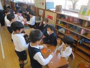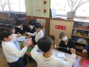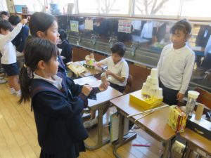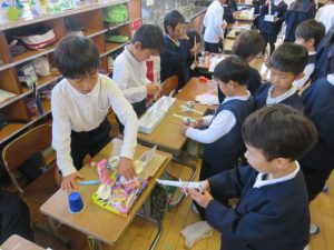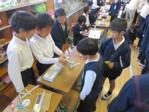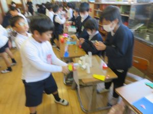 HOME > 教育活動 > イベントギャラリー(校長室ブログ) > 【1,2年】生活:おもちゃまつり 【1,2年】生活:おもちゃまつり 入力日2025年12月5日 閲覧数99 12月5日3時間目は、2年生が1年生を招待してのおもちゃまつりでした。 2年生一人ひとりが創ったおもちゃは、それぞれに思いがあります。 1年生におもてなしをしながら接待をする2年生の姿がとても微笑ましかったです。 素晴らしいお兄さんお姉さんぶりでした🌟 前へ 一覧へ戻る 次へ