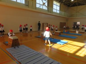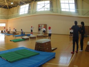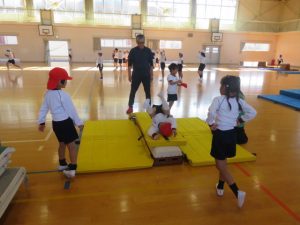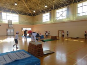 HOME > 教育活動 > イベントギャラリー(校長室ブログ) > 【1,3年】体育講師中原先生による 跳び箱学習 【1,3年】体育講師中原先生による 跳び箱学習 入力日2025年11月7日 閲覧数52 県の「令和の日本型学校体育構築支援事業」を活用し、元本校校長の中原先生に、1年生・3年生の体育(跳び箱)学習の指導に来ていただいています。11月中に各学年計5時間ずつご指導いただく予定です。子どもたちは中原先生の分かりやすいお手本や励ましの言葉に意欲を高め、楽しみながら練習に取り組んでいます。教員にとっても学びの多い時間となっており、授業づくりや指導力の向上につなげていきたいと考えています。 【1年】 【3年】 前へ 一覧へ戻る 次へ