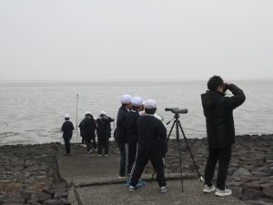HOME > 教育活動 > イベントギャラリー(校長室ブログ) > 【4年】総合:野鳥観察 【4年】総合:野鳥観察 入力日2026年2月16日 閲覧数57 2月16日4年2組は、ラムサール条約登録地「肥前鹿島干潟」に野鳥観察に出かけました。まず、学校でラムサール条約推進室の先生から観察の仕方の指導を受けいざ出発!! たくさんの野鳥が干潟にエサを求めて飛来していました。各自、双眼鏡を覗きながらカモやアオサギ、チュウシャクシギなどを確認し大喜びでした。残念ながら、今回は、クロツラヘラサギは観察することができませんでした😢。 自然の豊かさに触れ、環境保護について考える貴重な体験ができました。 4年1組は今週末に観察に行く予定です。 前へ 一覧へ戻る 次へ