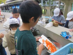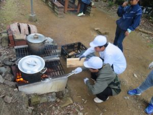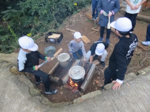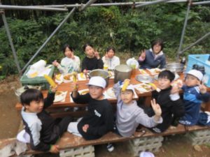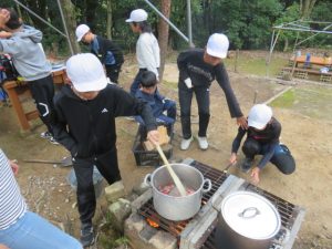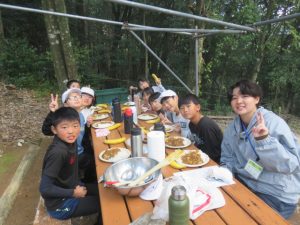 野外炊飯では、火おこしから調理まで力を合わせ、みんなで「おいしい!」と言えるカレーを完成させました。