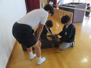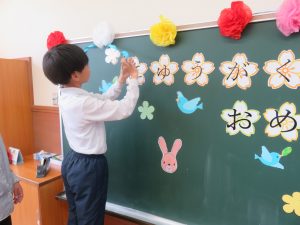 HOME > 教育活動 > イベントギャラリー(校長室ブログ) > 【6年】入学式準備(スーパー6年生) 【6年】入学式準備(スーパー6年生) 入力日2026年4月8日 閲覧数41 4月8日午後、明日の入学式に向けて、6年生が準備に取り組みました。 「はい、喜んで」の気持ちで、自分から仕事を見つけ、進んで動く姿があちこちで見られました。 1年生に喜んでもらいたい――その思いを胸に、会場づくりや清掃、教室飾りや細かな準備まで、心を込めてやり遂げた6年生。 その姿は、まさにきらり7番「人のために進んで動く」そのものです。 学校のために、そして新しく入ってくる仲間のために力を尽くした6年生に、大きな拍手です。ありがとうございます。とても頼りになる自慢のスーパー6年生です。 一覧へ戻る 次へ