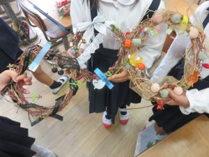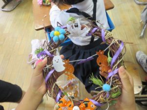 HOME > 教育活動 > イベントギャラリー(校長室ブログ) > 【1年】図工:ハロウィンリースづくり 【1年】図工:ハロウィンリースづくり 入力日2025年10月28日 閲覧数65 10月28日1年生教室では、あさがおのリースでハロウィンリースづくりが行われていました。 子どもたちは準備してきた飾りを思い思いにつけながら、自分のマイリースを完成させていきました。 とてもかわいいリースが出来上がりました。 前へ 一覧へ戻る 次へ
