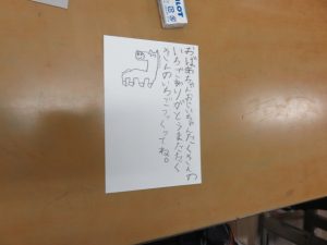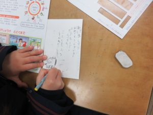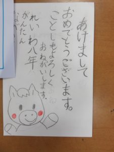HOME > 教育活動 > イベントギャラリー(校長室ブログ) > 【1年】生活:年賀状書き 【1年】生活:年賀状書き 入力日2025年12月23日 閲覧数65 1年生は、生活科の学習で年賀状を書きました。 これまでに学習したひらがなや漢字を使い、一文字一文字ていねいに書き上げました。 先生も子供たちが書いた年賀状を紹介しながら、素敵なはがきになるよう声掛けをして回られていました。 いとこやおじいちゃん、おばあちゃんの顔を思い浮かべながら、心を込めて書く姿がとても印象的でした。受け取った方にとって、きっと心がほっと温まる、うれしい年賀状になることでしょう。 前へ 一覧へ戻る 次へ