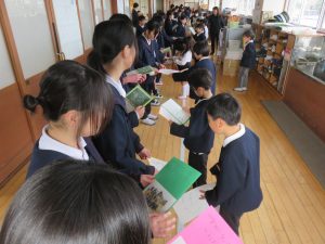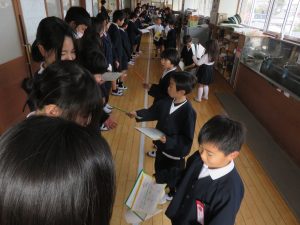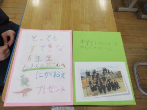 HOME > 教育活動 > イベントギャラリー(校長室ブログ) > 【1年&6年】6年生への感謝のプレゼント渡し 【1年&6年】6年生への感謝のプレゼント渡し 入力日2026年3月4日 閲覧数103 3月4日朝の時間、1年生は6年生へ「感謝のプレゼント」を渡しにいきました。 プレゼントには、お手紙や写真、そして6年生一人一人の似顔絵が描かれていました。 受け取った6年生はとても嬉しかったようで、終始ニコニコ顔でした。 1年生が時間をかけて一生懸命作ったことが伝わったようです。素晴らしいプレゼントに1年生の成長も感じました。 前へ 一覧へ戻る 次へ