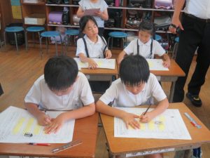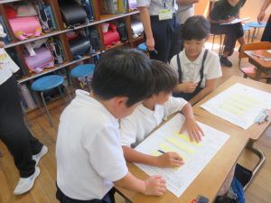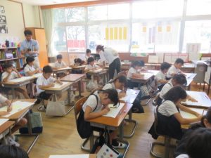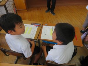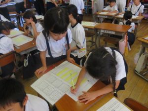 9月19日、2年1組で校内研究全体授業研究会第1回を行いました。