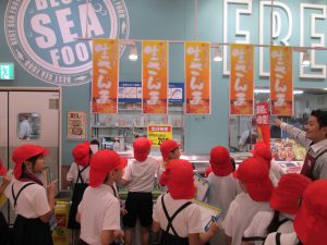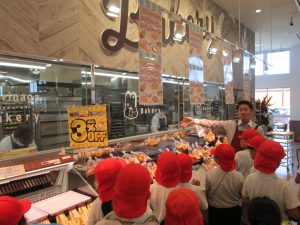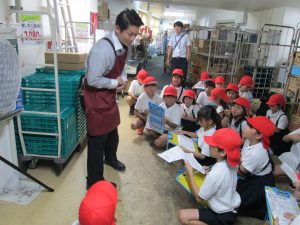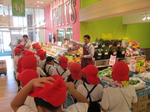 「値段はどうやって決めているのですか」「なぜ店員さんは全員同じエプロンをしているのですか」「専用のトラックはあるのですか」など、子どもたちは積極的に質問をして、お店の秘密や工夫についてたくさん知ることができました。