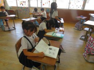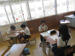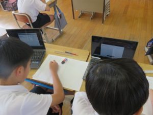 単元全体を見通し、みんなで一緒に学習する時間と自由進度で学習する時間を設定して取り組んでいます。今日はちょうど自由進度学習の時間でした。