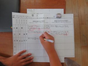 子どもたちは自由進度学習の形に慣れてきており、自分のめあてに向かって主体的に学習を進めています。プリント学習やミニテストに挑戦したり、前の時間までのノートで確認したり、友だちと学び合ったり、1キログラムの量感を体験的に養ったり、タブレットドリルで確かめを行ったりと、多様な学びの方法を工夫しながら、1時間を充実させています。