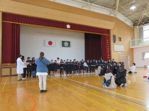 2時間目は、県立宇宙科学館の所員の方をお招きし、科学実験の出前授業を実施しました。身近な不思議に触れ、子どもたちは目を輝かせながら実験に参加していました。